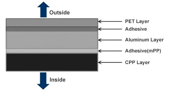 The reason why the pouch battery adopts thermal packaging is that it uses aluminum-plastic packaging film material, which is usually divided into three layers, namely, the outer resistance layer (usually the outer protective layer composed of nylon BOPA or PET), the barrier layer (the middle layer of aluminum foil ) and inner layer (multifunctional high barrier layer).